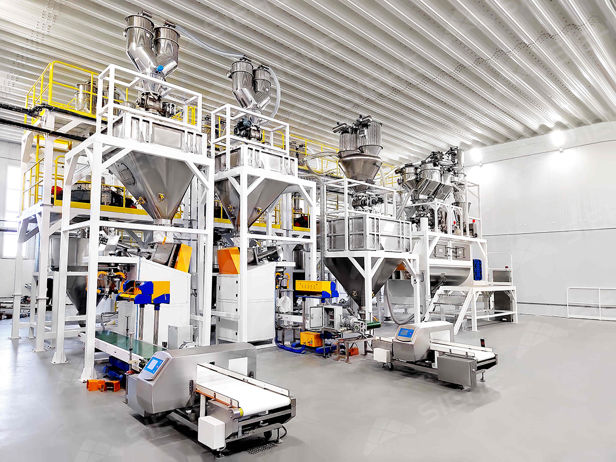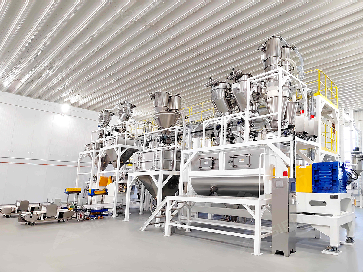 The core equipment of the production line, the Horizontal Ribbon Mixer, adopts a dual-ribbon design, delivering high mixing efficiency while minimizing material damage. Additionally, load cells installed at the bottom perform secondary weighing of raw materials, ensuring precise ingredient batching accuracy. The entire production line is centrally controlled from a master console, with all nodal PLCs interconnected to the SCADA system. Operators can manage the full production process directly from their workstations, delivering high automation levels and significantly improving production efficiency.