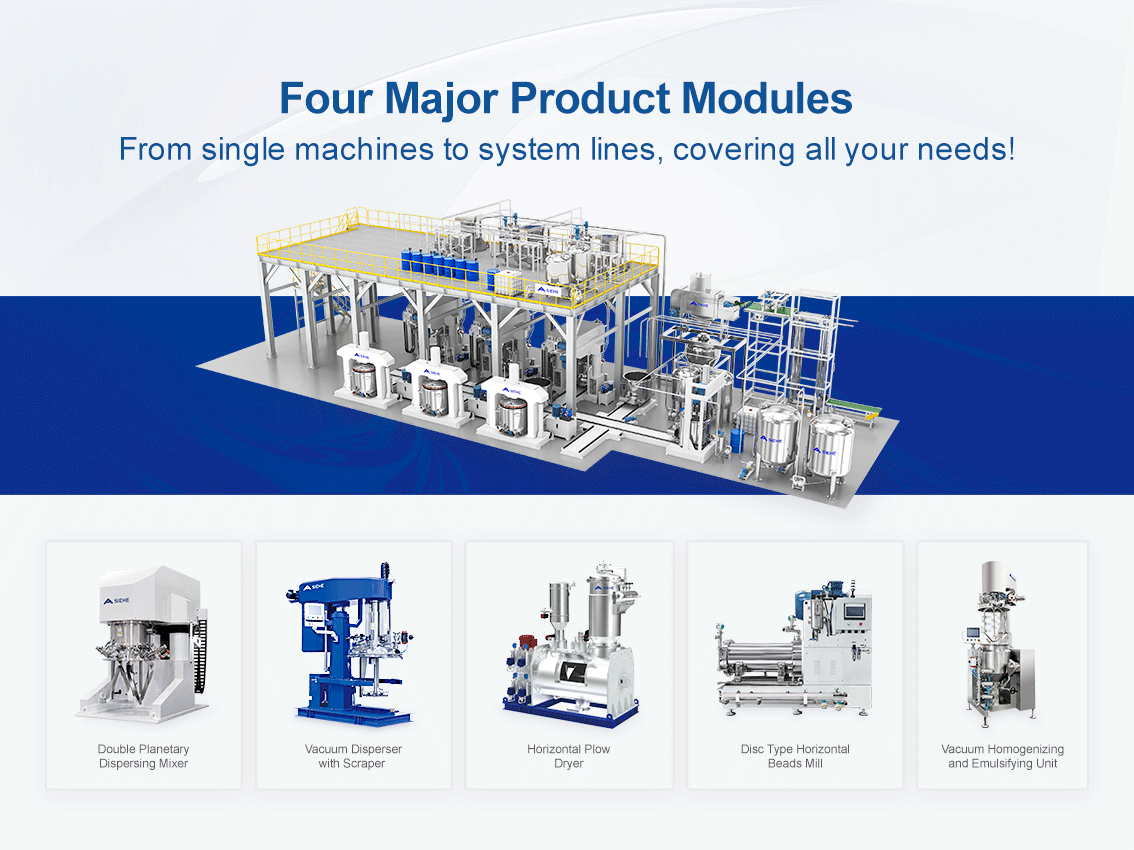 يقع المقر الرئيسي لمجموعة SIEHE في هونغكياو، شنغهاي، الصين، ولديها مرافق إنتاج حديثة في جينشان، شنغهاي وجياشينغ، تشجيانغ. تتخصص الشركة في أربعة نماذج أساسية من المنتجات — الخلط عالي اللزوجة، خلط المسحوق والتجفيف، التشتت والطحن، والتجانس والتسترطيب بالفراغ — وتوفر للعملاء حلولاً شاملة تتراوح من المعدات المستقلة إلى خطوط الإنتاج الذكية.