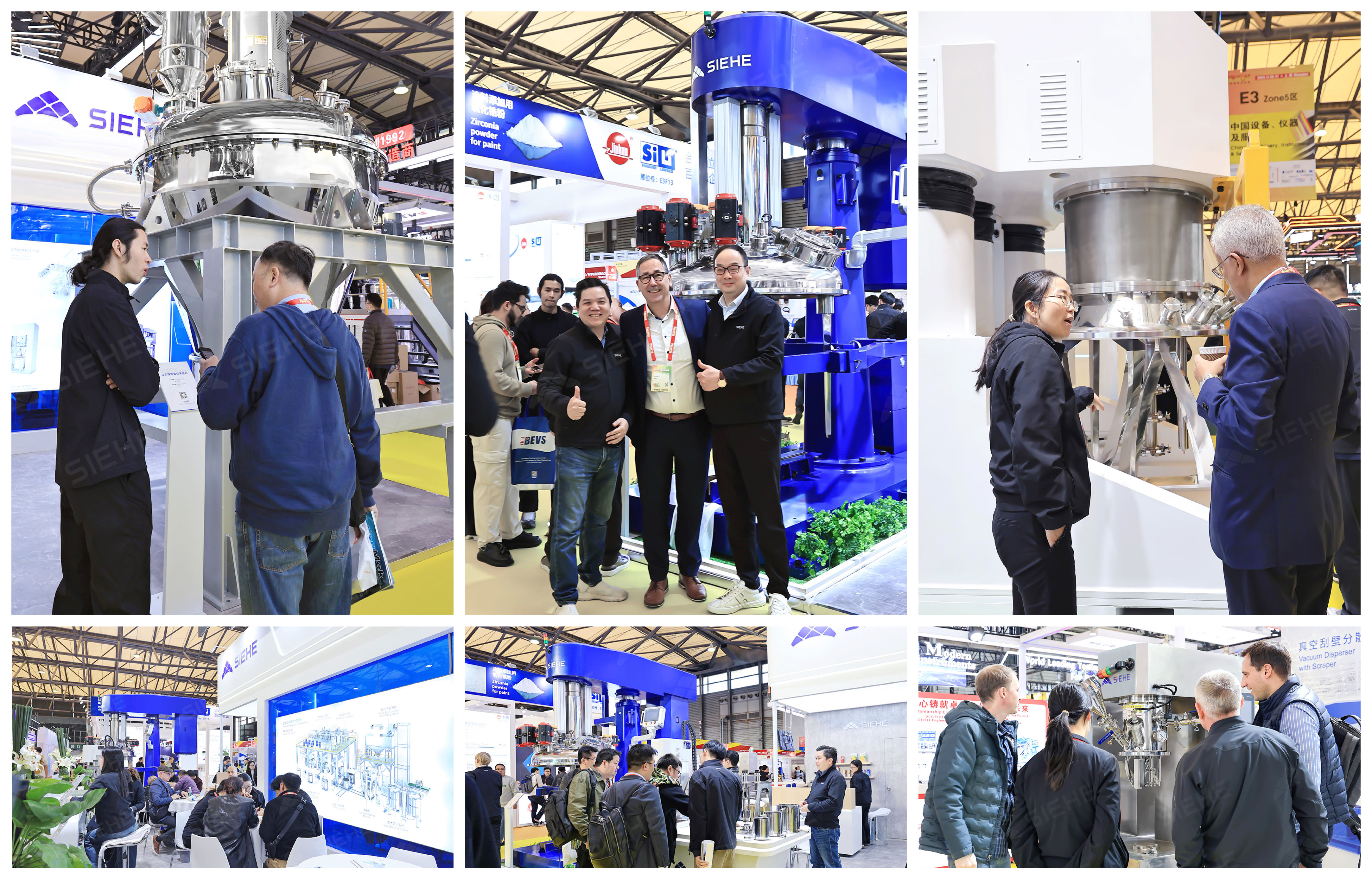 في المعرض، عرضت SIEHE منتجاتها الأساسية، بما في ذلك خط إنتاج الطلاء الأوتوماتيكي، وخط الإنتاج الأوتوماتيكي الكامل للمواد اللاصقة، ونظام إنتاج المواد اللاصقة/المواد المانعة للتسرب، ووحدة التجانس والاستحلاب بالفراغ، ومستحلب التشتت المستمر، ومطحنة السلة الهيدروليكية. تضمنت العروض الحية معدات مثل الخلاط التشتتي الكوكبي المزدوج سعة 500 لتر، والمشتت الفراغي الترددي سعة 1000 لتر المزود بمكشطة، والمجفف الفراغي الشريطي العمودي سعة 2500 لتر، والآلة المتعددة الوظائف للمختبرات، والخلاط الكوكبي المزدوج للمختبرات، مما يسلط الضوء على التزام SIEHE بتوفير حلول طلاء شاملة من البحث والتطوير إلى الإنتاج الضخم.