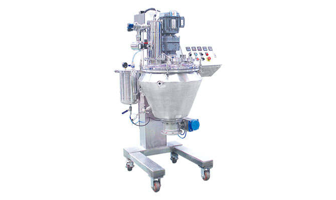 Lab Vertical Vacuum Drying Mixer is specially developed for the needs of scientific research units, colleges and universities and factory laboratories. Adopting European synchronous technology, it is suitable for powder & particles mixing, drying and reaction process test platform, stirring soft or strong optional, equipped with electric lifting system, easy to feed, but also used for equipment cleaning after the test, to meet the requirements of GMP standards; The lifting system adopts imported products from Europe, and the equipment lifting bracket adopts integrated electric push rod aluminum alloy material; The remaining parts are all made of SS304 stainless steel, and can be customized with SS316L material; SS321 stainless steel, or other high hardness alloy stirrer, can also be polyurethane lined or sprayed with high wear resistant material (improve working head life, reduce metal pollution); The machine has compact structure, simple operation and easy maintenance.
