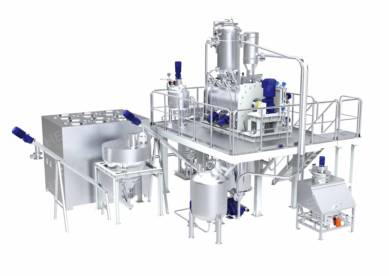 يتميز النظام بأكمله بتصميم متكامل وهيكل مُدمَج، ويتكون من نظام تفريغ ونقل المساحيق، ونظام جرعات السوائل الأوتوماتيكي، ونظام الخلط والتجفيف، ونظام التحكم، ونظام التنظيف، والوحدات الملحقة.